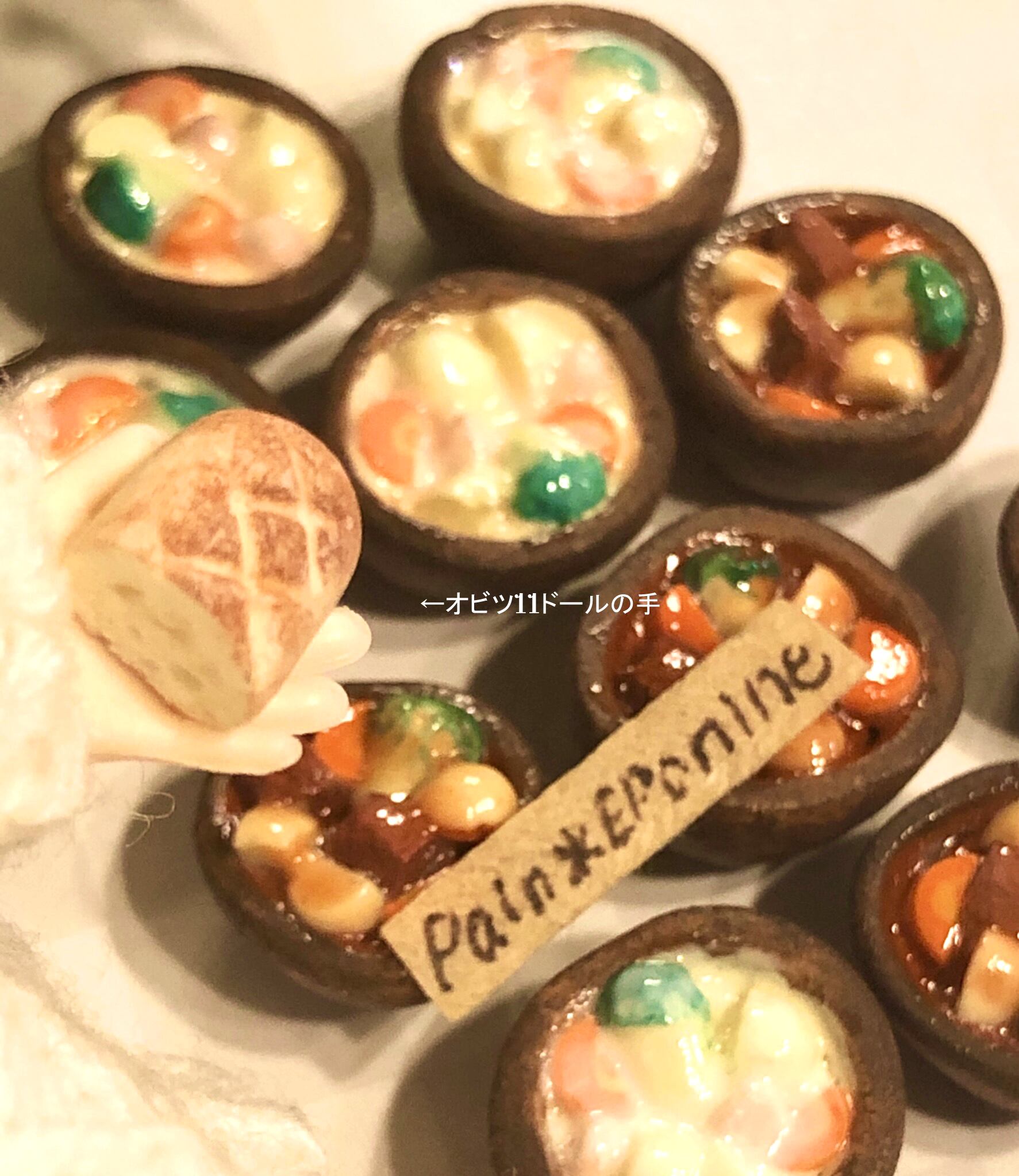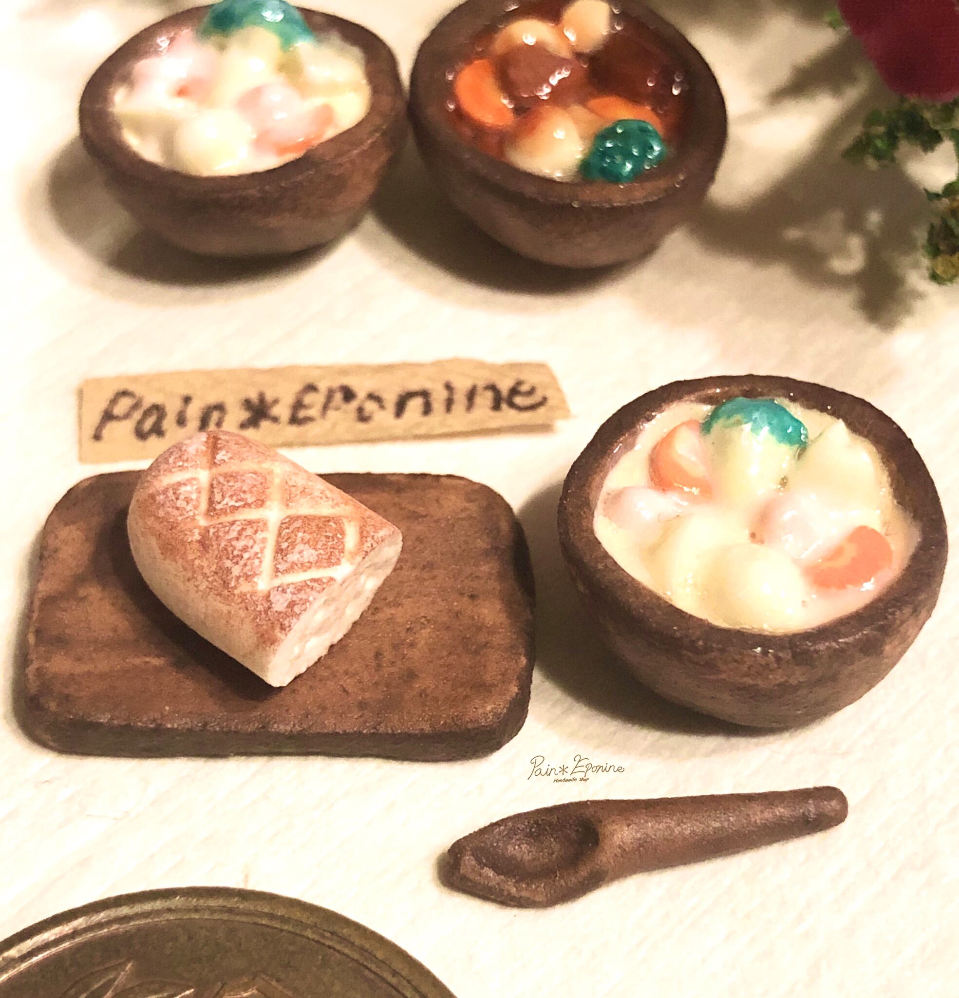 ミニチュアサイズの具沢山シチューとパンのセットです♪