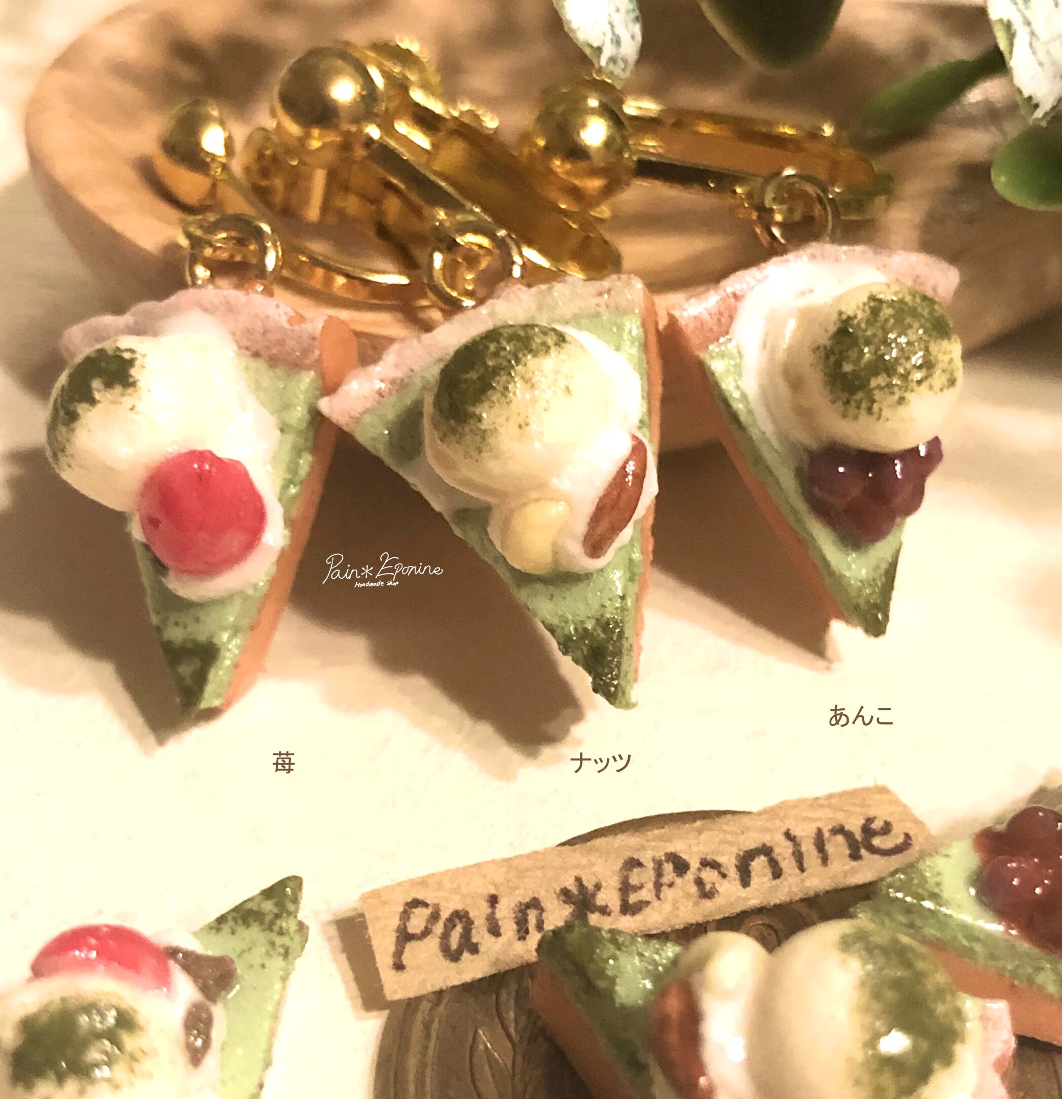 抹茶のタルトにバニラアイスを乗せたスイーツのイヤリング♪